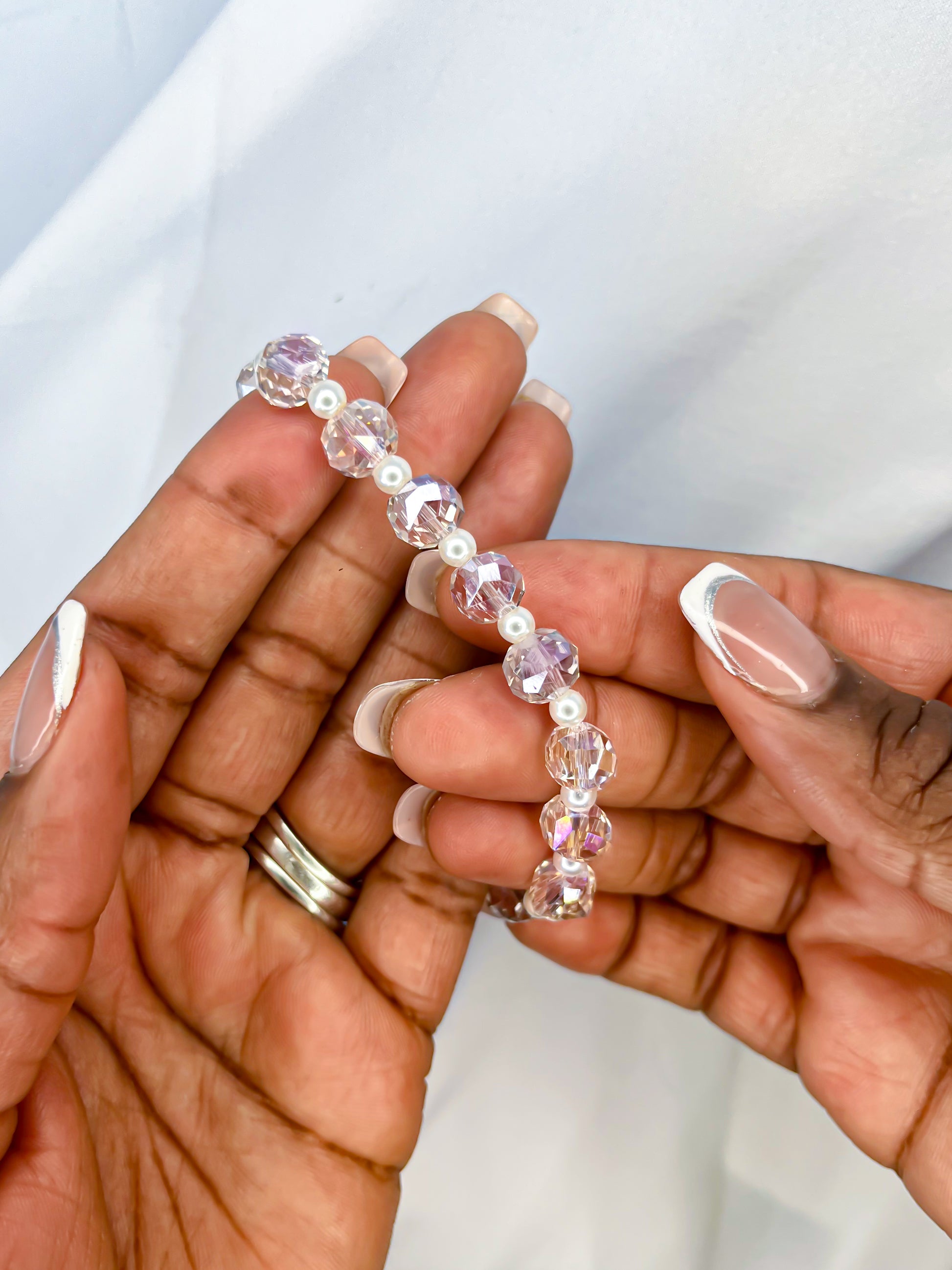 Elevate your style with our Crystals Stretch Bracelet. The light purple hue of the crystal beads, combined with small pearls, adds a touch of elegance. Perfect for stacking with other stretch bracelets, this accessory will bring a sophisticated touch to any outfit.
