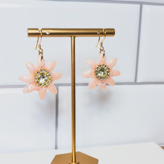 Radiant pink opal forms the striking eight-pointed star of this luminous pendant, its soft rose hues capturing light with natural sparkle. A gleaming gold center anchors the design, creating elegant contrast and drawing the eye to the stone's delicate beauty.